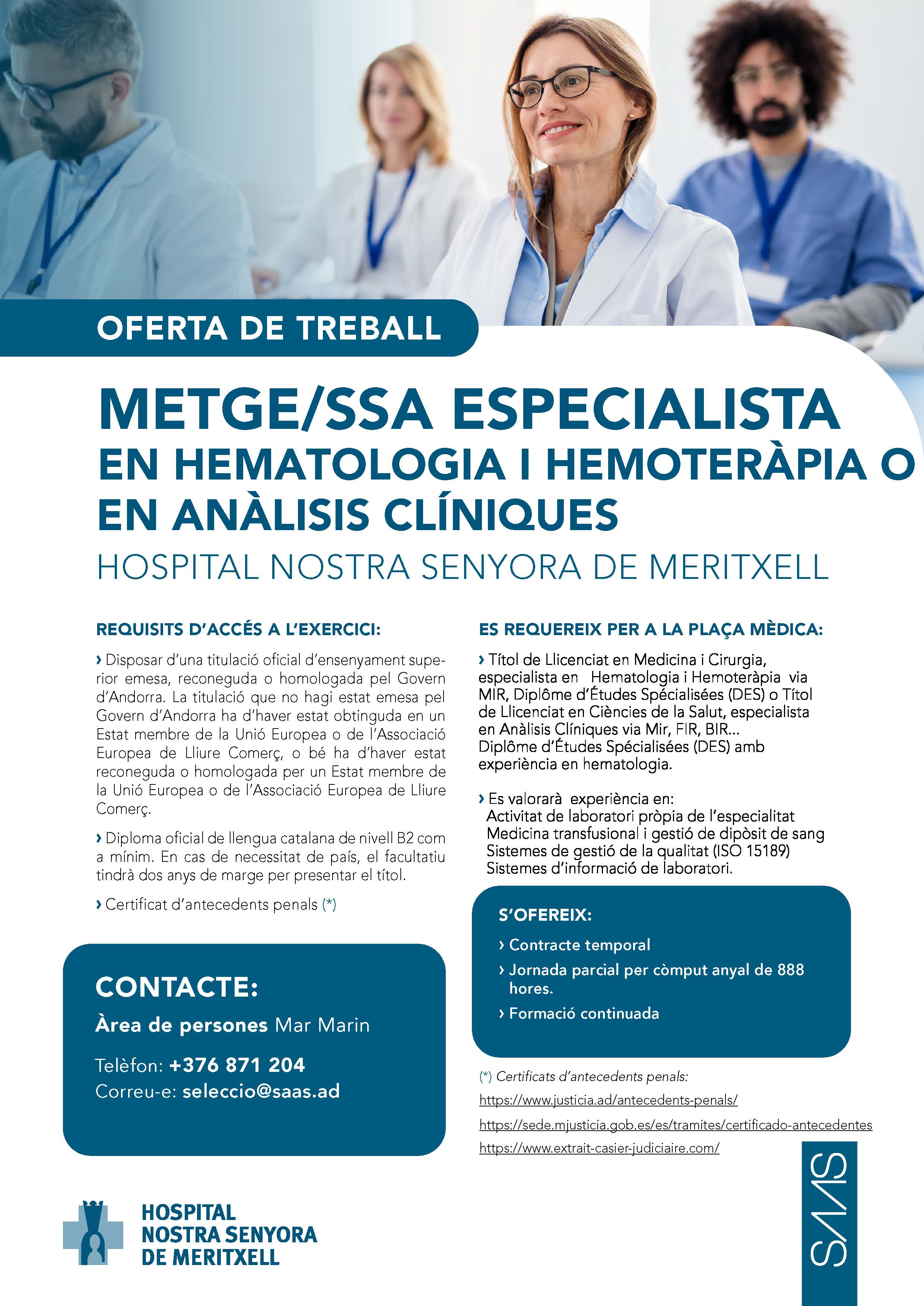 Metge/ssa especialista en hematologia i hemoteràpia o en anàlisis clíniques